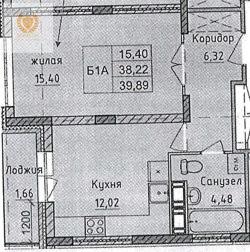 | Площадь (кв.м.) | Общая: 39.89 Жилая: 15.4 Кухня: 12.02 39.89 / 15.4 / 12.02 |